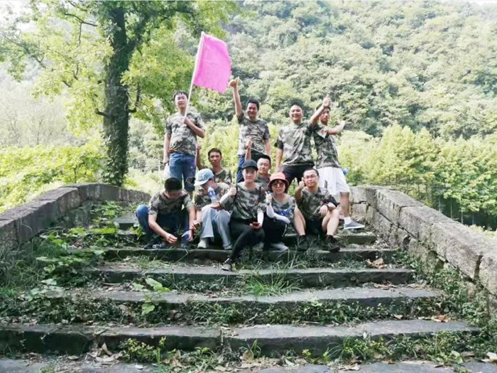 早上7點15分,隊伍集結完畢后就乘車前往本次活動目的地。本次活動共計66人,分別來自安徽基地各公司的不同部門,活動以破冰游戲拉開本次拓展序幕。組隊員、選隊長、畫隊旗、定口號、擺隊形,大家以最快的速度組成了6支小隊。