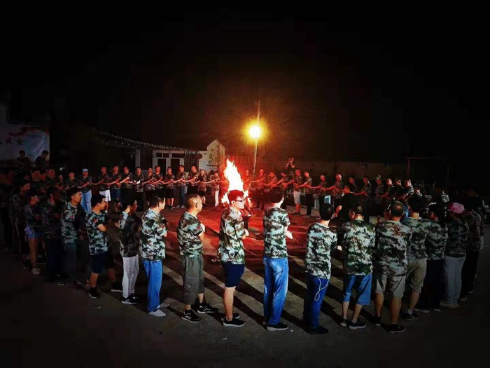 美食過后,組織方還貼心的準備了一場熱情的篝火晚會幫助大家消化。沒有了崗位之分、沒有了小隊伍之分,大家一起手拉手圍繞著火焰載歌載舞。隨著節(jié)拍、跟著口令,這一刻,拋卻煩惱,只有圍繞在你左右的微笑融化著彼此的心防,我們是一個大家庭,那么就一起分享此刻的愉悅吧!